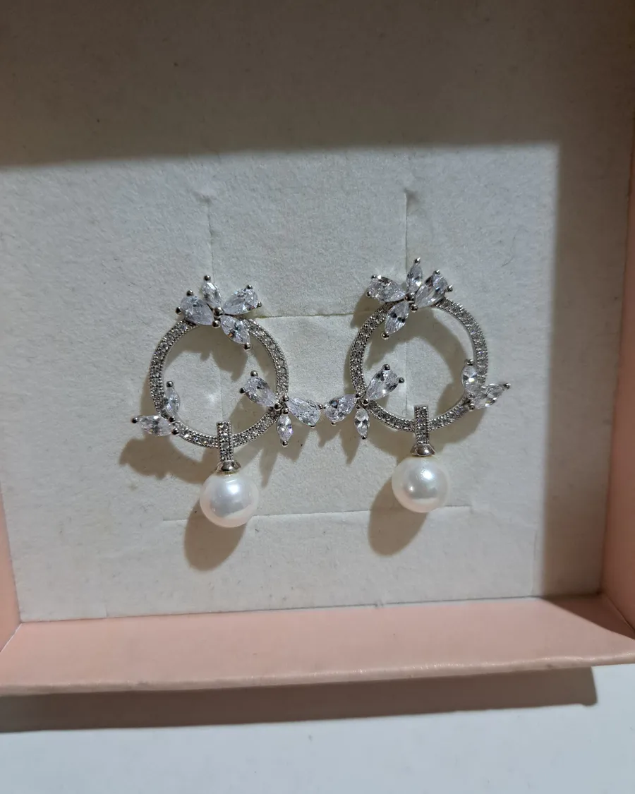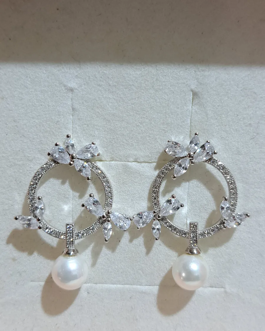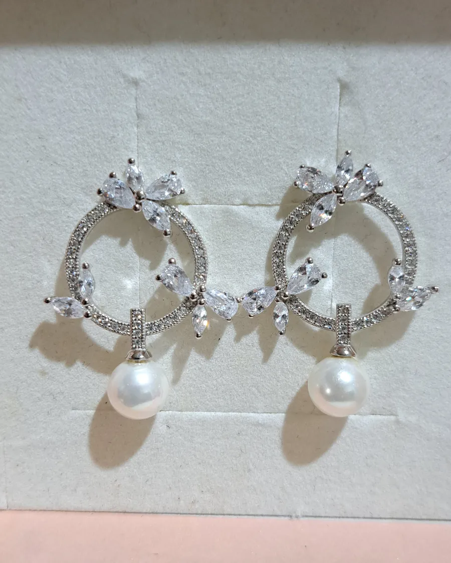珍珠鑲鑽耳針耳環